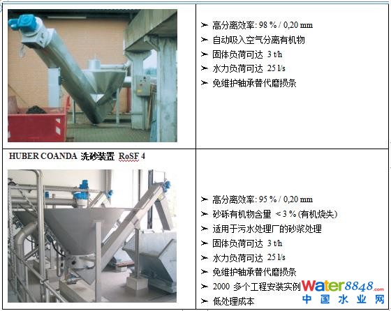 有些污水廠初沉池污泥含水率3~8%,其中無(wú)機(jī)物ISS含量約為30~50%,某些地方可能達(dá)到70%。如果前面沉砂池效果好的情況下,初沉池中的泥砂粒徑范圍可能如下:<30μm, 占比70%; 30-200μm, 占比28.5%; >200μm, 占比1.5%。如果要去除這部分細(xì)砂,可采用旋流器+Huber砂水分離器RoSF3?沙浞职l(fā)揮水力旋流對(duì)超細(xì)砂礫的分離,結(jié)合RoSF3的脫水效果將砂礫分離出來(lái)。