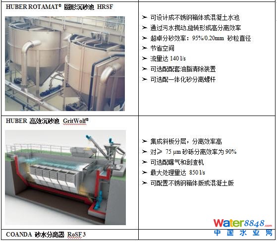 污水廠沉砂池的主要功能是去除密度較大的無(wú)機(jī)顆粒如泥砂、煤渣等。主要的沉砂池有平流式沉砂池、豎流式沉砂池、曝氣沉砂池和旋流式沉砂池。漢斯琥珀®對(duì)應(yīng)的產(chǎn)品有Huber矩形沉砂池Ro6(可選擇曝氣或不曝氣)、Huber圓形沉砂池HRSF和Huber旋流沉砂池VORMAX。針對(duì)0.2mm以下超細(xì)砂的去除,可選擇Huber高效沉砂池GritWolf®。后續(xù)的砂水分離、洗砂和脫水同上。
