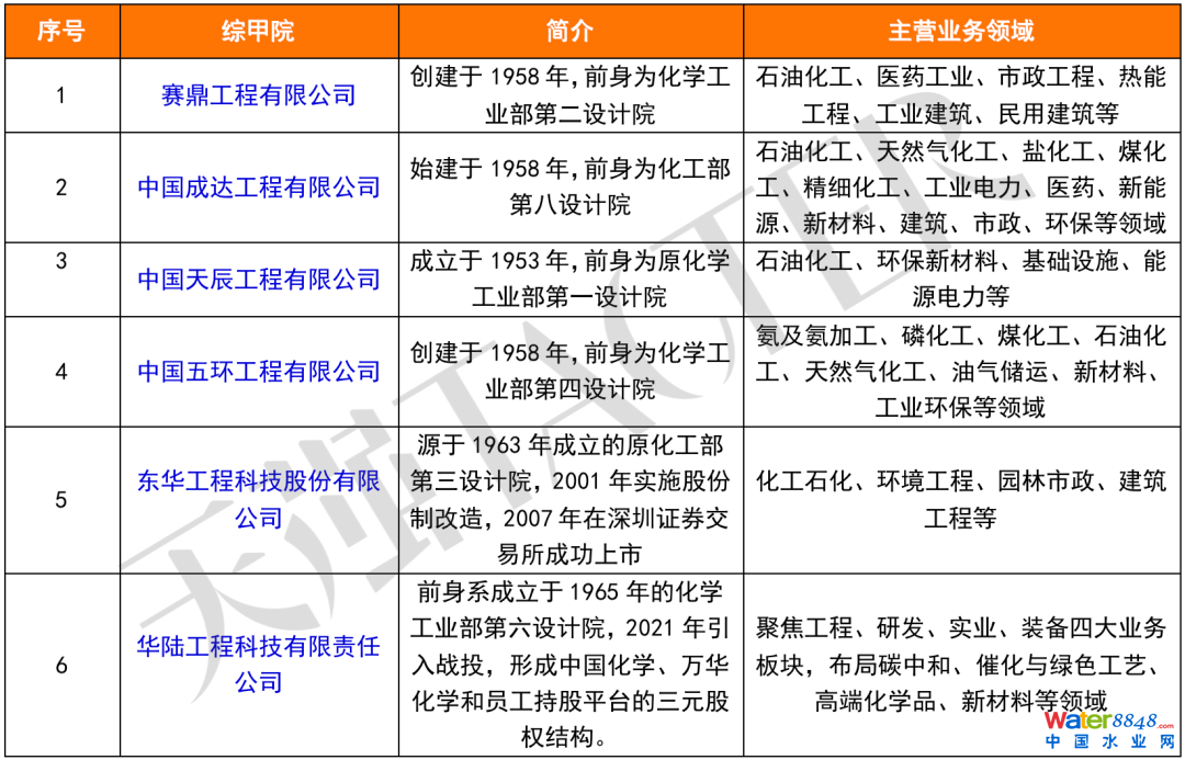 以下6家綜甲院,前4家為中國(guó)化學(xué)工程股份有限公司的全資子公司,后2家為中國(guó)化學(xué)工程股份有限公司的控股子公司。