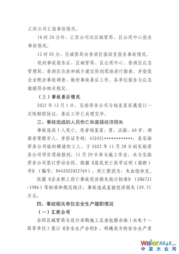 致1人死亡 珠海市香洲區(qū)鳳凰排洪渠范圍水環(huán)境綜合治理項(xiàng)目“11·30”物體打擊事故調(diào)查報(bào)告