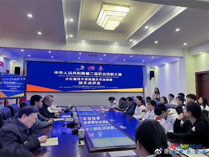 中華人民共和國(guó)第二屆職業(yè)技能大賽水處理技術(shù)項(xiàng)目重慶市選拔賽參賽隊(duì)伍由市政建環(huán)系孟靖華老師擔(dān)任領(lǐng)隊(duì),左歡歡老師擔(dān)任領(lǐng)隊(duì)助理,黃濤老師以及王云川老師擔(dān)任比賽裁判,市政建環(huán)系學(xué)生邱春夢(mèng),孫婧鑫。4月1日,領(lǐng)隊(duì)帶領(lǐng)學(xué)生及裁判報(bào)道,裁判分別在上午進(jìn)行了裁判培訓(xùn),強(qiáng)調(diào)了執(zhí)裁紀(jì)律和要求,下午召開(kāi)了裁判會(huì)議,對(duì)執(zhí)裁細(xì)則進(jìn)行了討論,選手在下午召開(kāi)賽前動(dòng)員會(huì),而后進(jìn)行了模擬比賽流程,讓選手熟悉流程以及比賽場(chǎng)地。