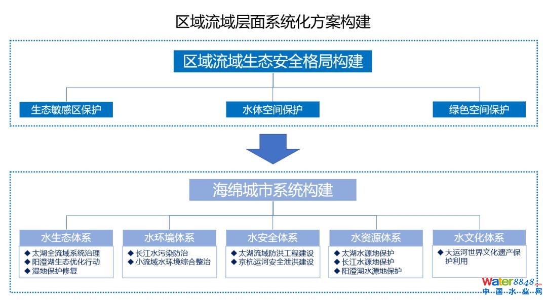 與總體規(guī)劃的關系——蘇州市海綿專項規(guī)劃與蘇州市國土空間總體規(guī)劃同步編制,已將海綿城市建設目標作為約束性指標納入城市總體規(guī)劃目標指標體系,并且出了幾點配置要素與海綿城市理念緊扣,包括:以水環(huán)境治理為重點,加強生態(tài)修復和環(huán)境污染治理;構建復合多元的“水網體系”,塑造具有吸引力的濱水空間等。