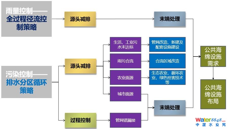 根據保護水生態(tài)、改善水環(huán)境、保障水安全、涵養(yǎng)水資源方案確定的措施,需要綜合分析地塊和市政項目的協同作用和功能,進行綜合統籌,并分別從源頭減排(建筑小區(qū)、道路廣場海綿化改造等)、過程控制(管網、調蓄設施、臨時凈化設施、污水處理廠等)、系統治理(山水林田湖、園林綠地、河道整治等)三個方面進一步梳理,從而提出海綿城市建設任務和規(guī)模。