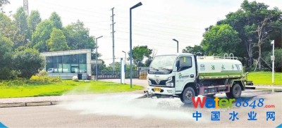 北湖污水處理廠利用再生水進(jìn)行廠區(qū)灑掃。