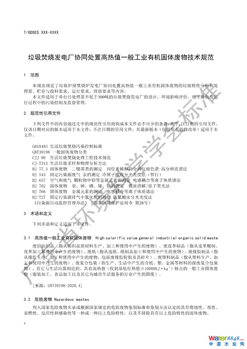團(tuán)標(biāo)《垃圾焚燒發(fā)電廠協(xié)同處置高熱值一般工業(yè)有機(jī)固體廢物技術(shù)規(guī)范》征求意見! 來源:廣東省環(huán)境科學(xué)學(xué)會