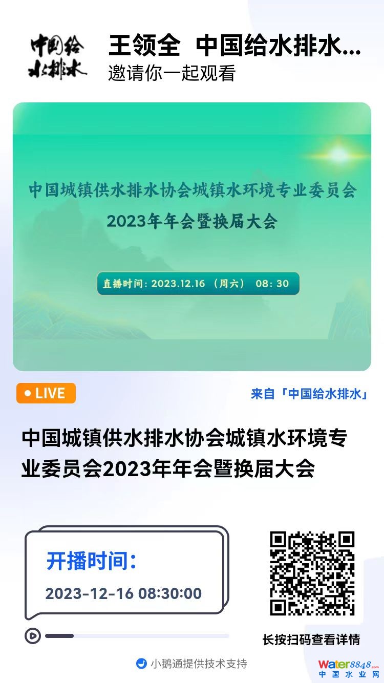 中國城鎮(zhèn)供水排水協(xié)會城鎮(zhèn)水環(huán)境專業(yè)委員會2023年年會暨換屆大會 直播時間:2023年12月16日(周六)08:30—18:00 2023-12-16 08:30:00 開始