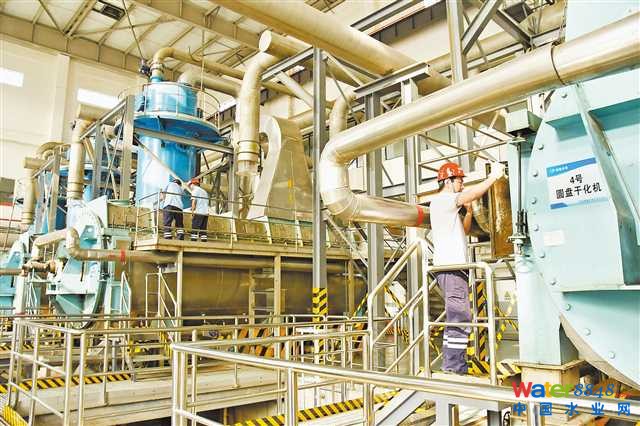 “吞進去的是污泥,吐出來的就是再生資源。”公司安全運行科科長張永強介紹,污泥從濕泥料倉輸送到12套高約4米的圓盤式干化機組進行干化處理后,含水率會由80%降至30%以下,變成細微顆粒狀的干泥,這正是隔壁電廠可再利用的生物質燃料。