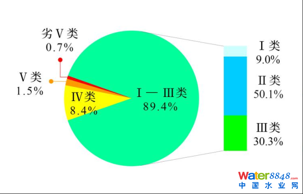 圖1   1—12月全國地表水水質(zhì)類別比例