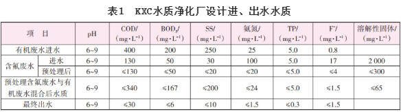 1.2.2設(shè)計(jì)進(jìn)、出水水質(zhì)根據(jù)環(huán)評(píng)批復(fù)及OLED項(xiàng)目確認(rèn),KXC水質(zhì)凈化廠設(shè)計(jì)進(jìn)、出水水質(zhì)指標(biāo)見表1。
