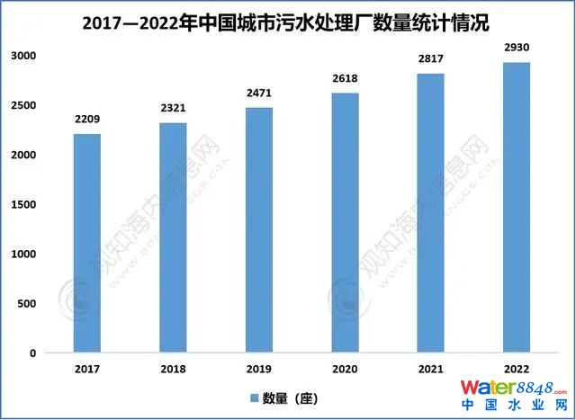2017—2022年中國城市污水處理廠數(shù)量統(tǒng)計(jì)情況