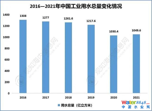 2016-2021年中國工業(yè)用水總量變化情況