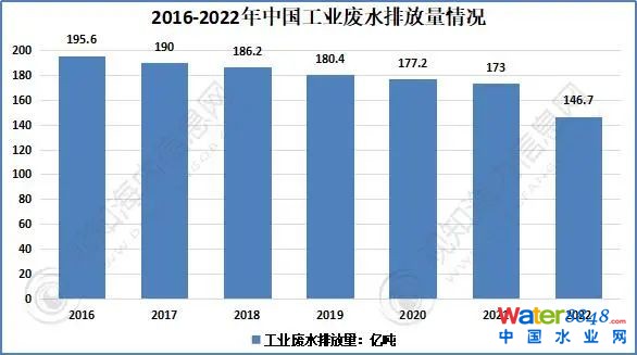 2016-2022年中國工業(yè)廢水排放量情況