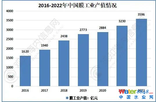 2016-2022年中國膜工業(yè)產(chǎn)值情況