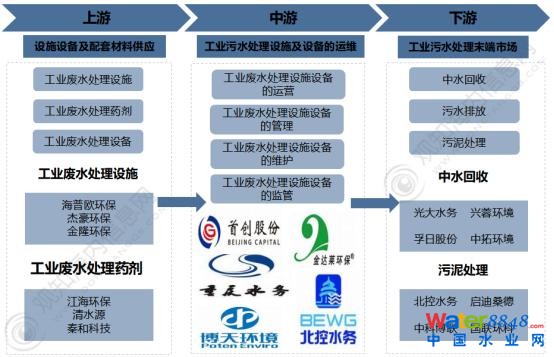 從工業(yè)廢水處理行業(yè)產(chǎn)業(yè)鏈上下游來看,工業(yè)廢水處理上游主要包括工業(yè)廢水處理設(shè)施、工業(yè)廢水處理設(shè)備以及工業(yè)廢水處理藥劑的提供。