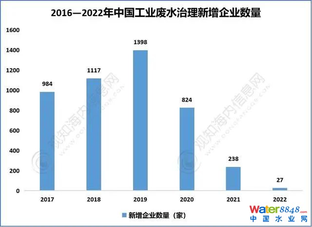 2016-2022年中國工業(yè)廢水治理新增企業(yè)數(shù)量