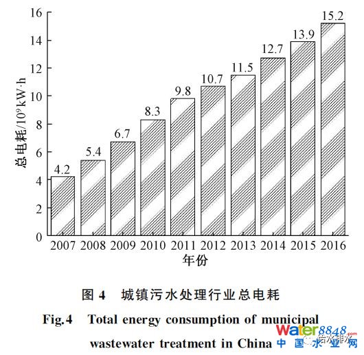 本研究涉及的我國城鎮(zhèn)污水處理廠廠級(jí)運(yùn)行數(shù)據(jù)來源于中國城鎮(zhèn)供水排水系統(tǒng)每年發(fā)布的《城鎮(zhèn)排水統(tǒng)計(jì)年鑒》,其基本信息包括每座污水處理廠的處理水量、污泥產(chǎn)生量、噸水耗電量以及6種污染物(CODCr、BOD、SS、NH3-N、TN和TP)進(jìn)水、出水濃度。