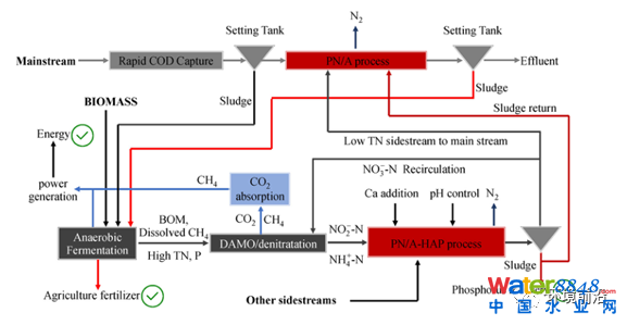 • 提出了一種以厭氧氨氧化工藝為核心的新型的生物處理概念。