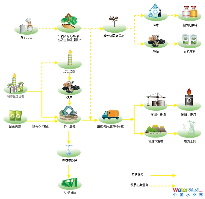 東江環(huán)保所從事的市政廢物處理業(yè)務(wù)包括市政廢物的處理處置和再生能源利用,主要是對(duì)城市生活垃圾進(jìn)行清運(yùn)和衛(wèi)生填埋以及生活垃圾填埋滲濾液進(jìn)行處理達(dá)標(biāo)排放;利用生活垃圾填埋場(chǎng)所產(chǎn)生的填埋氣進(jìn)行發(fā)電。此外,填埋氣發(fā)電項(xiàng)目和公司聯(lián)合投資的煤礦乏風(fēng)減排項(xiàng)目可減少溫室氣體的排放,符合《京都議定書(shū)》規(guī)定的清潔發(fā)展機(jī)制,項(xiàng)目經(jīng)聯(lián)合國(guó)CDM執(zhí)行理事會(huì)批準(zhǔn)后,二氧化碳核準(zhǔn)減排量可在國(guó)際市場(chǎng)交易。