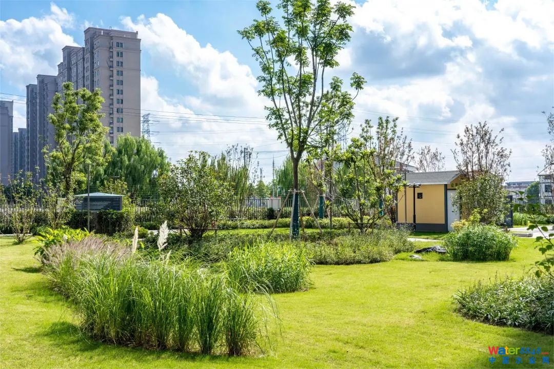 項(xiàng)目位于高新區(qū),占地面積7.2公頃,其中地下車庫面積占比超過80%。因地制宜運(yùn)用了生物滯留池、植草溝、雨水蓄水池等海綿設(shè)施,創(chuàng)新性地將地庫頂板虹吸式排水系統(tǒng)與雨水滯留池排水層相結(jié)合,解決了地庫覆土深度不足難以設(shè)置滲透型海綿設(shè)施的問題,為同類型項(xiàng)目提供了良好的解決思路。