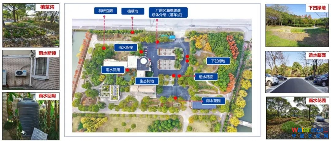 工程新建雨水花園、植草溝、濕地濕塘、生態(tài)停車場(chǎng)、下凹式綠地、透水路面等多種海綿設(shè)施,將石洞口廠打造成自然積存、自然滲透、自然凈化的“海綿城市”。