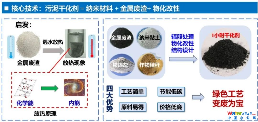 針對(duì)污泥干化問(wèn)題,東華大學(xué)學(xué)生團(tuán)隊(duì)以金屬?gòu)U渣危廢為基礎(chǔ)材料,巧妙利用其反應(yīng)性和成分組成,經(jīng)過(guò)結(jié)構(gòu)設(shè)計(jì)、物化改性和修飾賦能,通過(guò)干化劑的“熱驅(qū)動(dòng)-骨架建立-胞外聚合物降解”協(xié)同作用機(jī)制,研發(fā)出1小時(shí)干化劑,為污泥脫水提供一種近零成本、高效、簡(jiǎn)便、綠色的新路徑,助力解決市政污泥規(guī);幚硖幹煤唾Y源化利用“卡脖子”問(wèn)題。