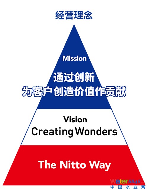 核心提示:美國(guó)海德能的使命是通過(guò)技術(shù)創(chuàng)新成為膜分離行業(yè)的全球知名企業(yè)。我們努力提供能達(dá)到行業(yè)高質(zhì)量的膜產(chǎn)品和服務(wù)。我們遵循商業(yè)倫理準(zhǔn)則建立業(yè)務(wù)關(guān)系,并擔(dān)當(dāng)社區(qū)的好企業(yè)公民。我們依據(jù)員工的貢獻(xiàn)提供公平的獎(jiǎng)勵(lì),并提供滿意的工作環(huán)境。 The Nitto Way 基礎(chǔ)思維解釋日東集團(tuán)全部員工通過(guò)創(chuàng)新思想,為達(dá)成“為客戶創(chuàng)造價(jià)值作貢獻(xiàn)”的“使命”所必須遵循的“價(jià)值”、“思維和態(tài)度”、“行為基準(zhǔn)”。 自日東集團(tuán)成立以來(lái),那些早于我們的日東員工所擁有的認(rèn)真的愿望、智慧和價(jià)值經(jīng)過(guò)長(zhǎng)期的積累已成為“日東DNA