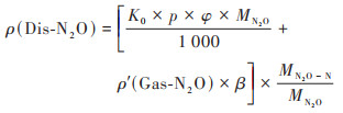 式中, ρ(Dis-N2O)為以N計(jì)單位體積溶解態(tài)N2O濃度(mg·L-1), K0為亨利定律常數(shù)[mol·(L·Pa)-1]. p為氣體壓強(qiáng)(Pa). ρ'(Gas-N2O)為N2O在上部空間的濃度(mg·L-1), 計(jì)算同式(1). β為頂空瓶上部空間體積和水樣體積的比值, MN2O為N2O分子中N的摩爾質(zhì)量(g·mol-1).