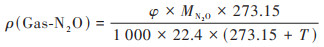 式中, ρ(Gas-N2O)為氣態(tài)N2O濃度(mg·L-1), φ為N2O體積分?jǐn)?shù)(10-6), MN2O為N2O的摩爾質(zhì)量(g·mol-1), T為環(huán)境溫度(℃).