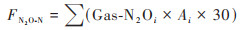 式中, FN2O‐N為生物池以N計(jì)N2O每月排放量(kg·月-1), Gas-N2Oi為集氣點(diǎn)位相應(yīng)以N計(jì)N2O釋放通量[g·(m2·d)-1], Ai為集氣點(diǎn)位相應(yīng)池體面積(m2).