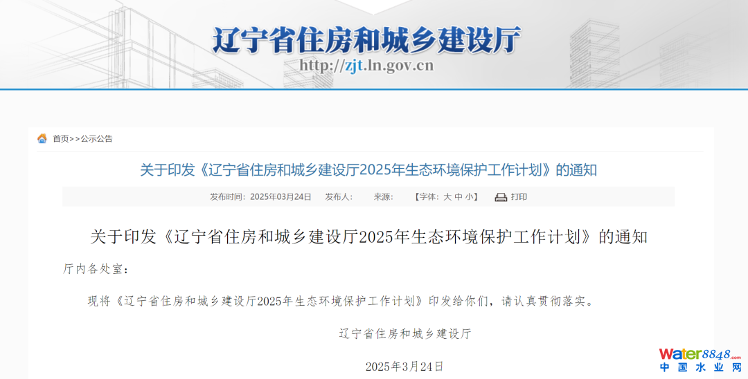 關(guān)于印發(fā)《遼寧省住房和城鄉(xiāng)建設(shè)廳2025年生態(tài)環(huán)境保護(hù)工作計劃》的通知