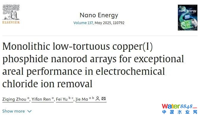 近日,同濟(jì)大學(xué)環(huán)境科學(xué)與工程學(xué)院馬杰團(tuán)隊(duì)在工業(yè)廢水電容去離子除氯方面取得進(jìn)展,相關(guān)成果發(fā)表于《納米能源》(nano energy)。該研究提出基于犧牲模板陣列工程的可控磷化策略,成功制備了單片低曲折度cu3p納米棒陣列,實(shí)現(xiàn)了高面積性能的電化學(xué)除氯,為低曲折度cu3p陣列在水處理中的應(yīng)用提供了新思路,并推動(dòng)了高效氯離子去除電極的發(fā)展。