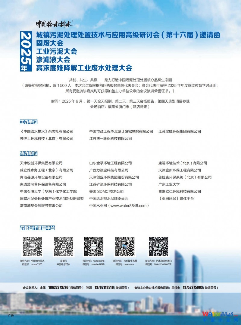核心提示:轉(zhuǎn)發(fā)直播邀請,直播邀請觀眾排行榜排名前20名的行業(yè)同仁,本人可以免費參加2025年9月份在福建省廈門市舉辦的中國給水排水2025年污泥大會(第十六屆)。