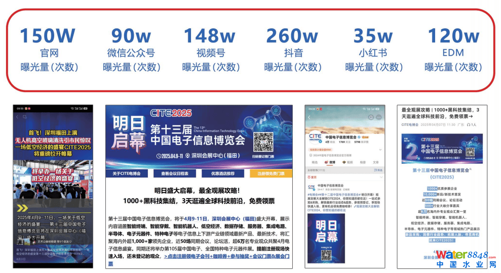 CITE電博會構建了全渠道、立體化的宣傳矩陣,通過“精準觸達+全域覆蓋”的策略實現(xiàn)行業(yè)影響力最大化。其宣傳體系涵蓋200+合作媒體矩陣(含新華社、央廣網(wǎng)、深圳特區(qū)報等央媒、主流媒體、專業(yè)媒體、紙媒等),覆蓋客戶端、網(wǎng)站、微博、微信等渠道,展前展中展后形成“曝光-互動-轉化”閉環(huán)。
