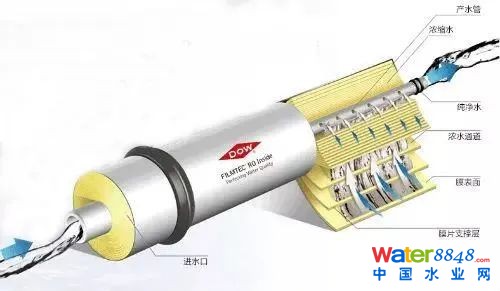 RO膜能夠很好地脫除離子和有機物,反滲透膜比納濾膜有更高的脫除率,反滲透通常能脫除給水中99%的鹽份,進(jìn)水中的有機物的脫除率≥99%。
