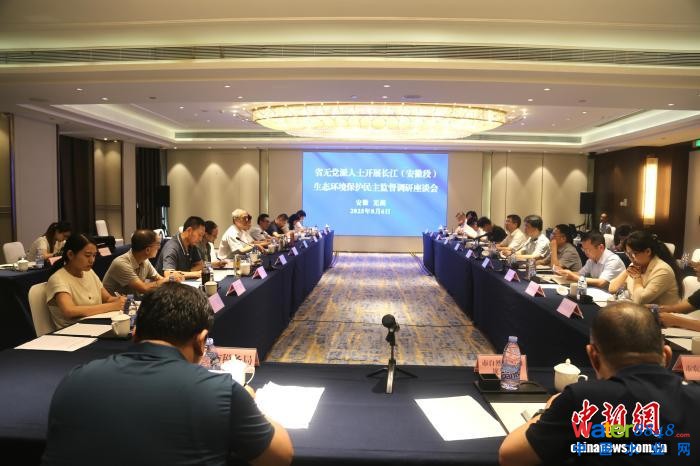 8月6日,安徽省無黨派人士長江(安徽段)生態(tài)環(huán)境保護民主監(jiān)督調(diào)研組在蕪湖市開展調(diào)研座談會。圖為座談會現(xiàn)場。傅天騁 攝