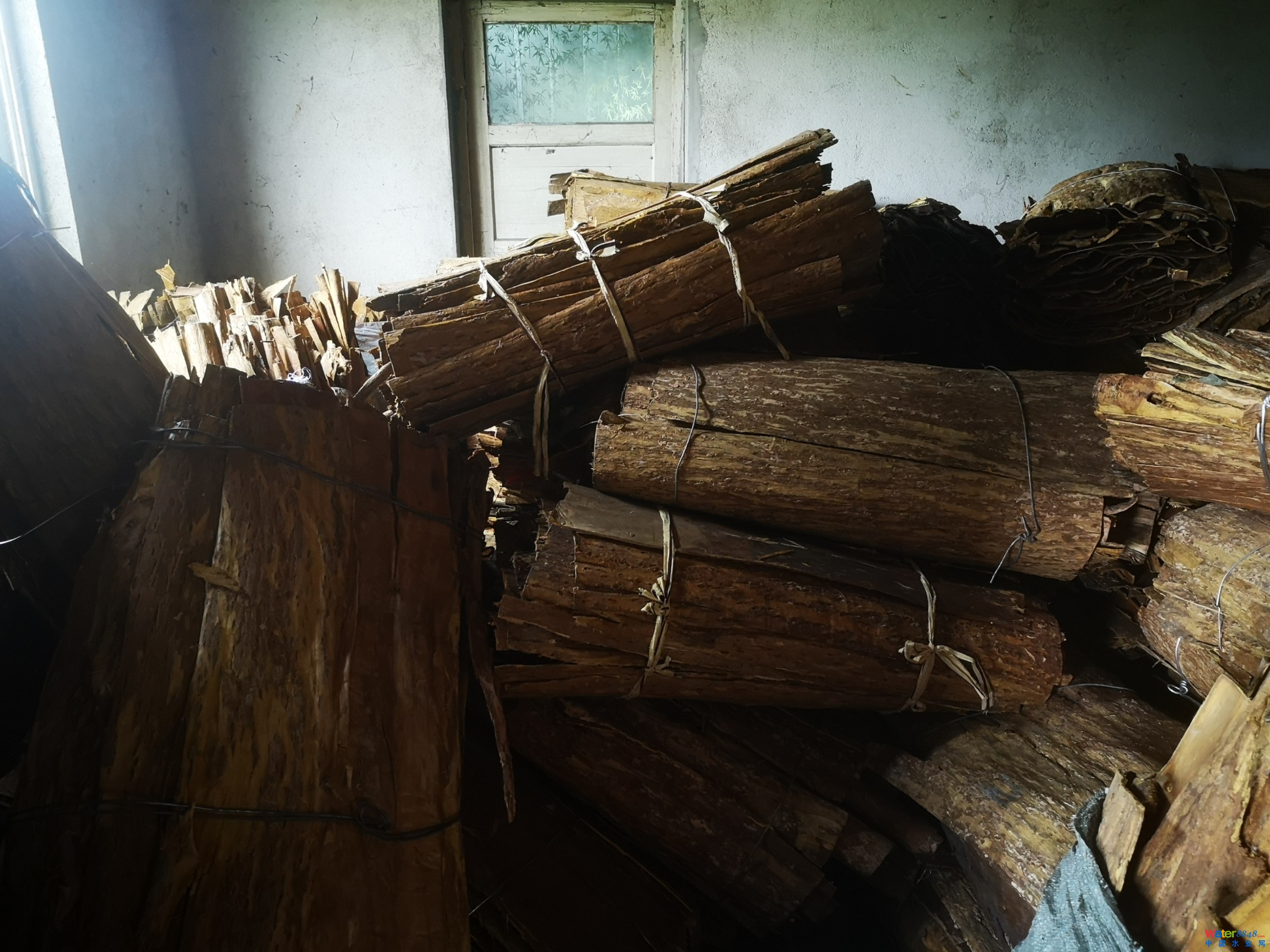 圖為嫌疑人在庫房內(nèi)藏匿的黃菠蘿樹皮(庫房為嫌疑人租用來專門屯放這些贓物)