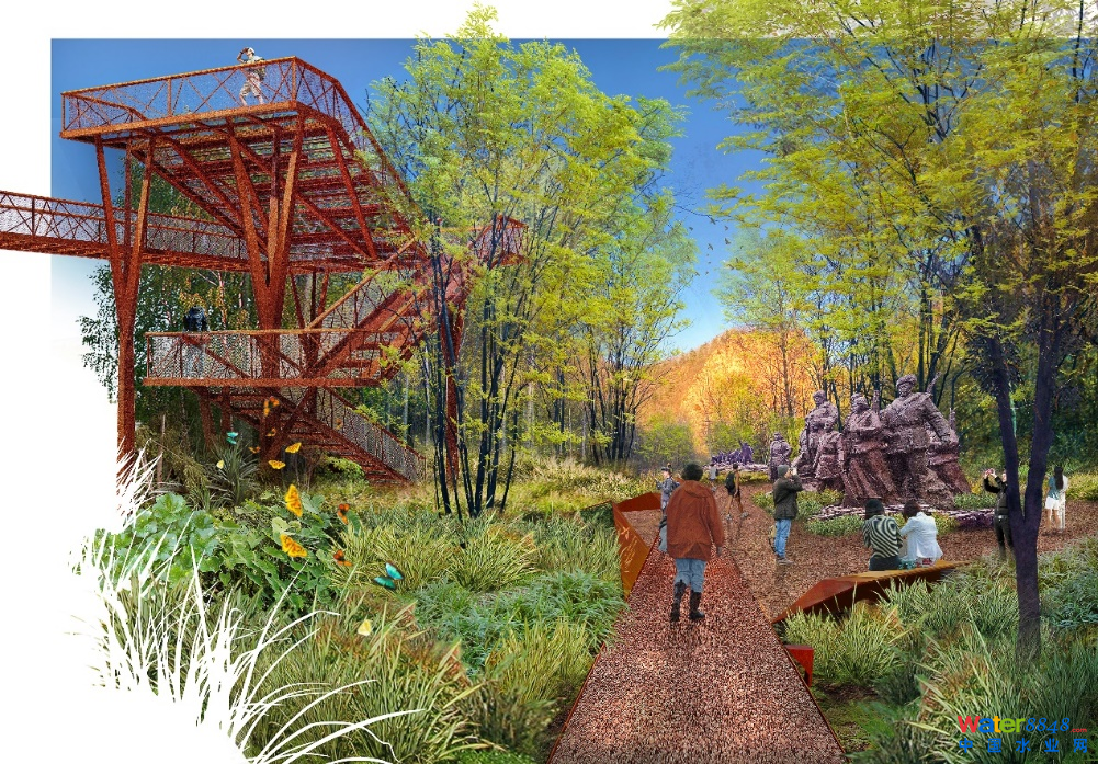 占地面積為34.6公頃;項目從修復(fù)河道生境、打造鄉(xiāng)土景觀、構(gòu)建游憩網(wǎng)絡(luò)等方面入手,旨在打造一個集雨洪調(diào)蓄、森林濕地景觀、地域紅色文化和休閑旅游為一體的松花江旅游樞紐。